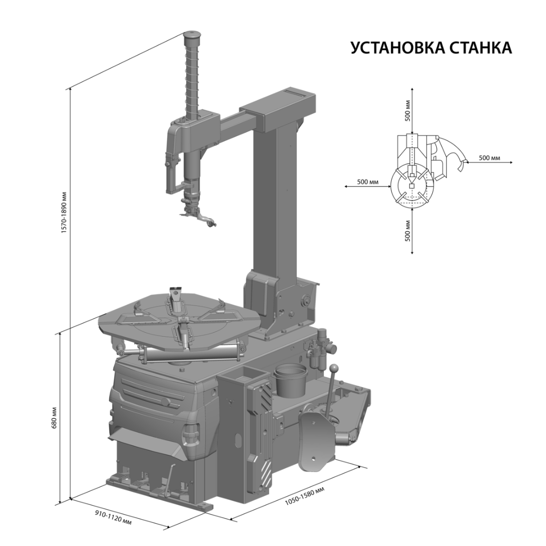 Конструкция станка дает возможность работать с покрышками диаметром до 1 метра и шириной до 330 мм