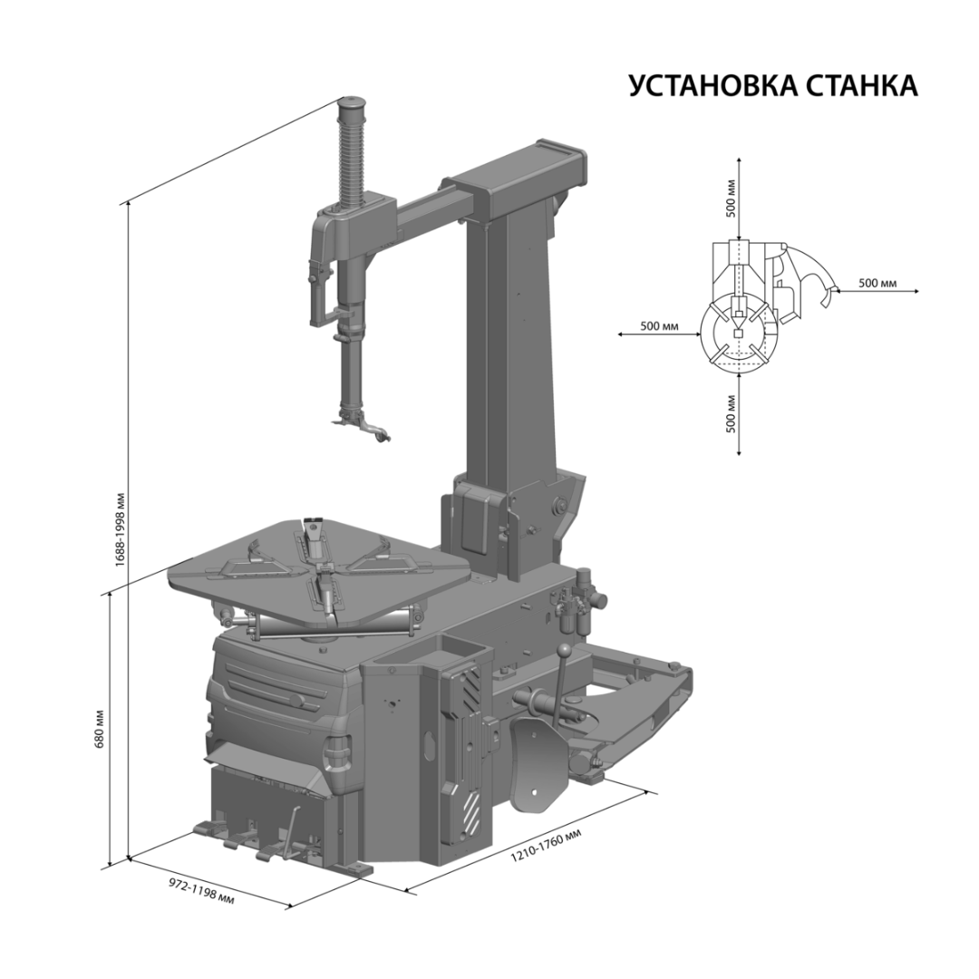 - Данная модель шиномонтажного станка идеально подходит как для обычных СТО, так и для мастерских, специализирующихся на обслуживании нестандартных колес большого диаметра