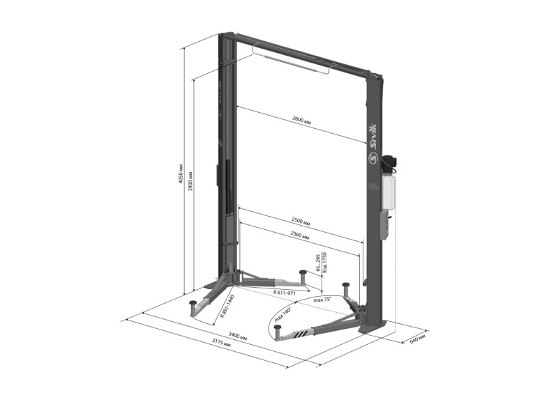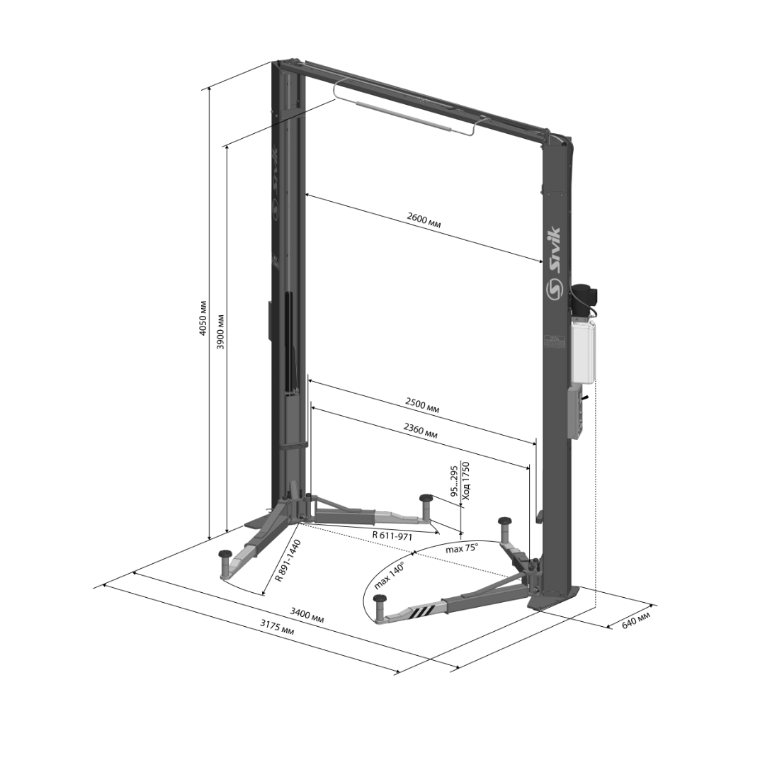 - Электрогидравлический двухстоечный подъемник для легковых автомобилей и внедорожников общей массой до 4,2т.
