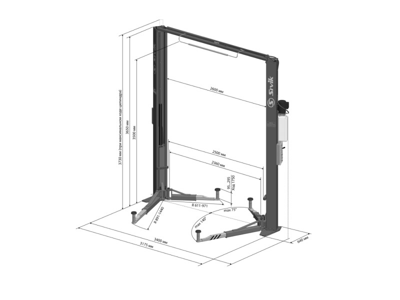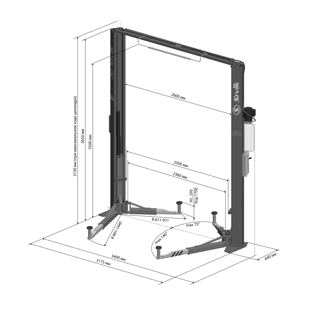 - Электрогидравлический двухстоечный подъемник для легковых автомобилей и внедорожников общей массой до 4,2т.