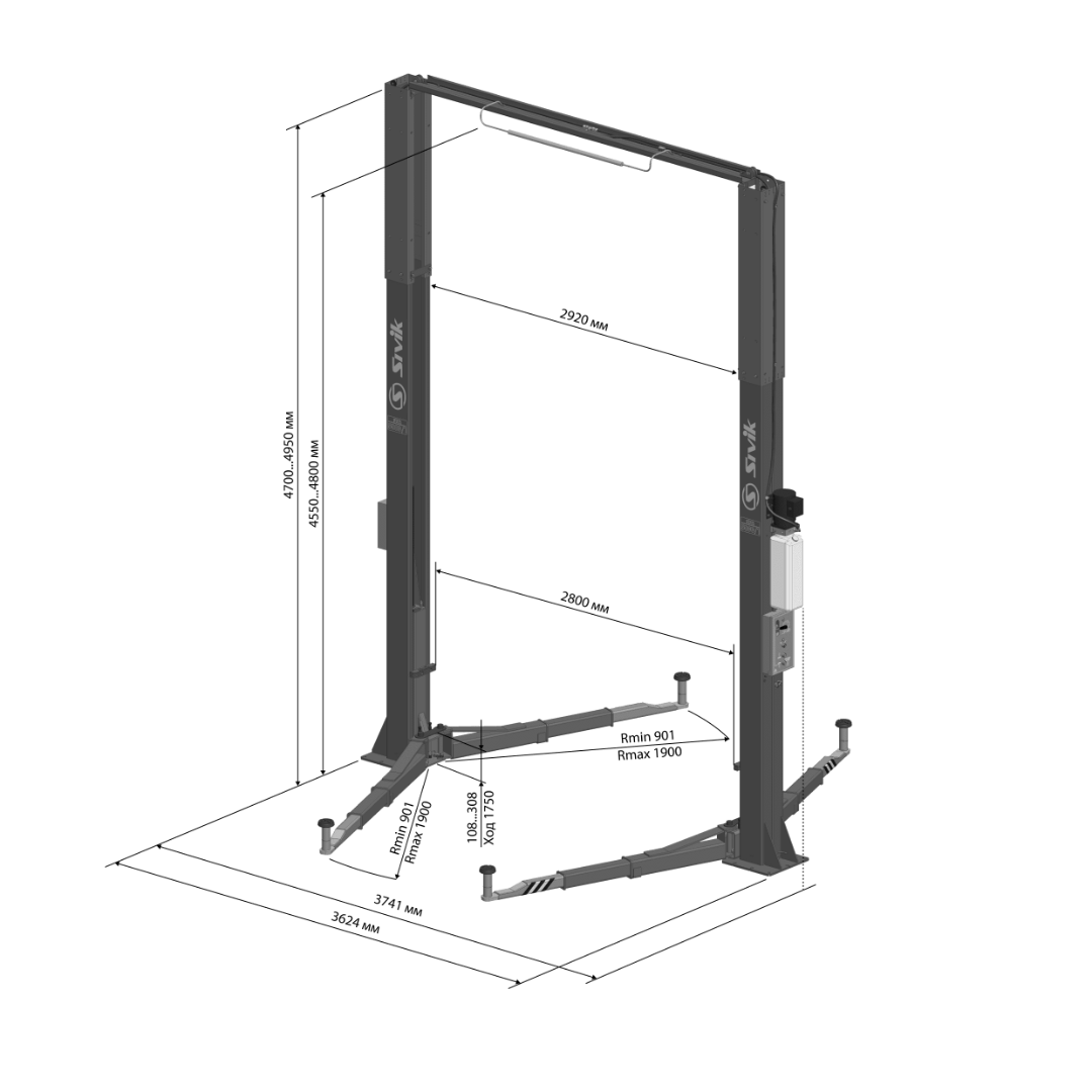 ДВУХСТОЕЧНЫЙ ЭЛЕКТРОГИДРАВЛИЧЕСКИЙ ПОДЪЕМНИК ПГА-5000/1 (ВЫСОКАЯ ВЕРСИЯ ДЛЯ LCV)