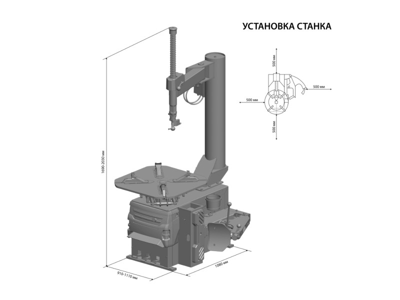 - Конструкция шиномонтажного станка позволяет работать с покрышками максимального диаметра до 1200 мм и максимальной шириной до 470 мм