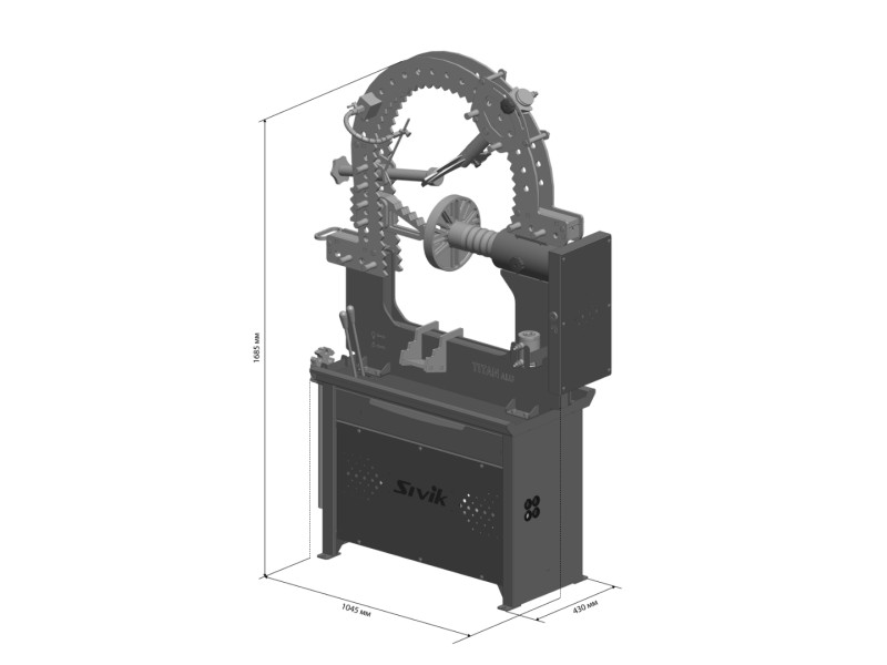 Стенд предназначен для правки любых повреждений легкосплавных литых и кованых дисков диаметром до 24” c электроприводом вала для просмотра биения поврежденного диска.