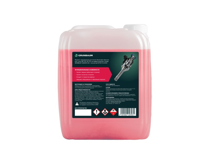 Специализированная жидкость, которая позволяет промывать бензиновые форсунки всех типов (MPI, SPI, GDI, FSI) на профессиональных стендах GRUNBAUM INJ6000N GDI с технологией EXTRA FLUSHING